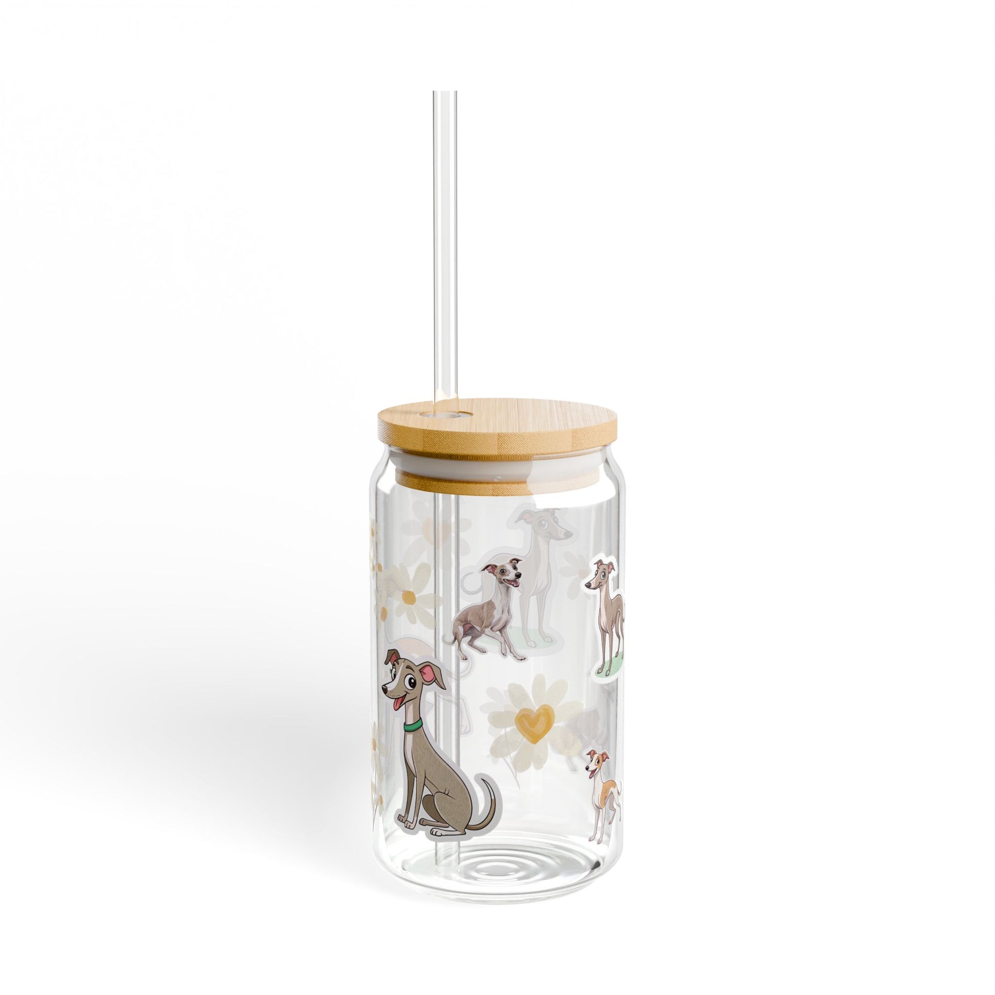 Whimsical Dog-Themed Sipper Glass, 16oz - Cute Canine Drinkware for Pet Lovers, Gifts for Dog Owners, Summer Hydration, Floral Design